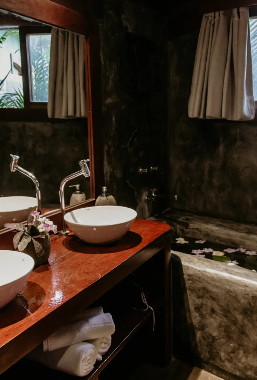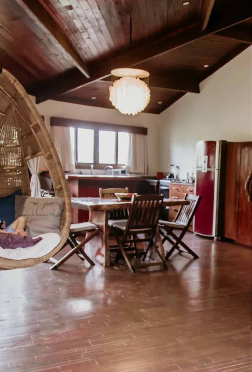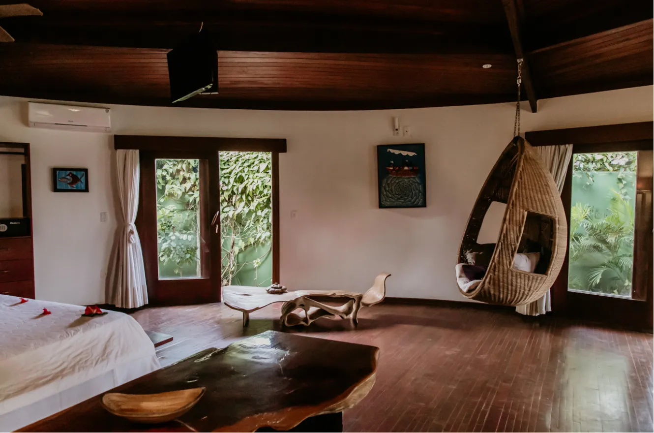 Este bangalô é a escolha ideal para estadias prolongadas ou para viajantes que não abrem mão de preparar seu próprio café ou um jantar especial. Aqui, a arquitetura se funde com a Mata Atlântica, proporcionando a sensação de uma residência de praia exclusiva com todos os mimos de uma pousada boutique.